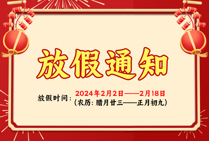 leyu乐鱼游乐2024年春节放假通知 根据国家关于法定节假日的规定,并且结合公司实际情况,现对2024年春节放假作如下安排。 放假时间:2024年2月2日至2024年2月18日(农历:腊月廿三正月初十) 2024年2月19日(农历正月初十)正式开工。 放假注意事项: 1、春节期间避开景点高峰期,方便旅行; 2、要切实提高安全意识,注意交通安全和防火……