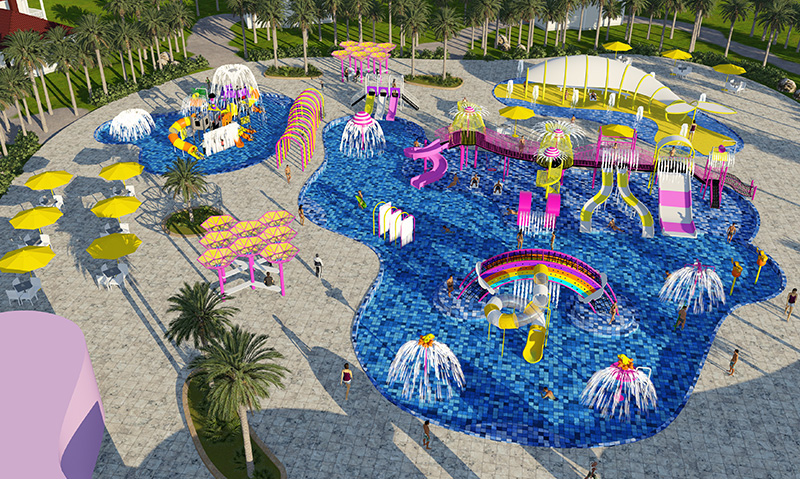 本案例设计灵感来源于孩子们喜欢的梦幻世界,以及小朋友喜欢的梦幻水滑梯,这里充满的无穷的欢乐,可以在这里幻想喜欢的世界,体验梦幻世界中的欢乐,小朋友可以在彩虹中尽情的戏耍打闹,欢快的追逐天边的缤纷彩虹,整个水上乐园充满活泼奇特、色彩缤纷,在这里能够游泳、能够健身,让孩子们在玩的过程中激发了想象力,提高勇于挑战的勇气和游玩带来的欢乐!