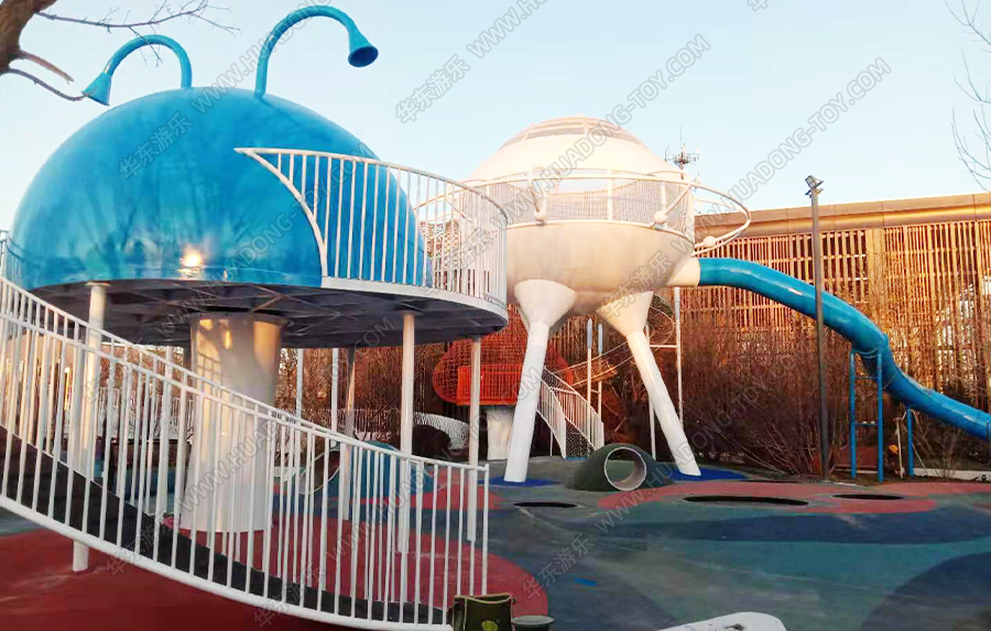 • 山西太原南站新中心万科新都荟飞碟项目是万科房地产的小区项目,主要为生活在该小区的居民提供生活、娱乐、休闲、健身等游乐场所。改项目采用飞碟外观进行设计,充满的科技与神秘感,号召小朋友探索整个宇宙。 、