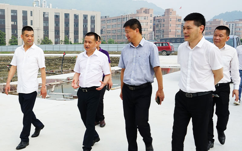 2021年5月12日下午,永嘉县县长吴呈钱、桥头镇镇长金志敏等相关领导莅临leyu.乐鱼游乐设备有限公司桥头新建厂工地进行工作调研,leyu.乐鱼游乐董事长吴建静通知陪同前往。