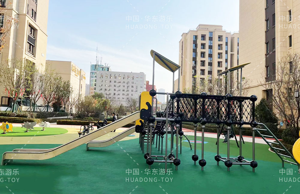 太原华润昆仑域地产项目选用的是leyu.乐鱼游乐自主研发的游乐设备,娱乐场里选用了健身器材、具备攀爬网、不锈钢滑梯为一体的综合性游乐设备,为生活在该小区的人们提供了一个生活、休闲、娱乐的场所。