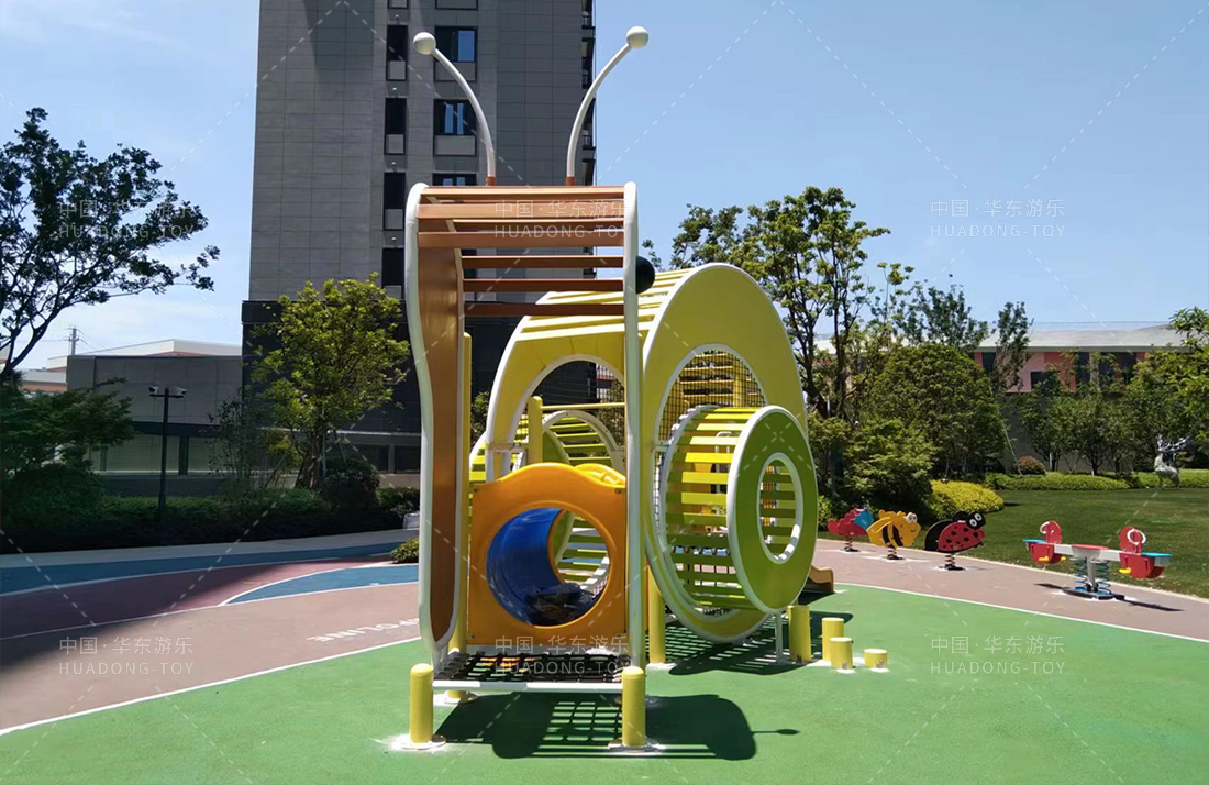 温州德信博悦湾选用的是leyu.乐鱼游乐设计和生产的以动物世界的蜗牛为外形而设计的游乐设备,整个游乐场添置了小朋友喜欢的摇摇乐、传声筒、跷跷板、攀爬杆等游乐设备,为生活在该小区的小朋友提供了一个娱乐、休闲、玩耍的场所。