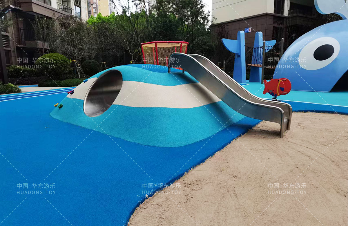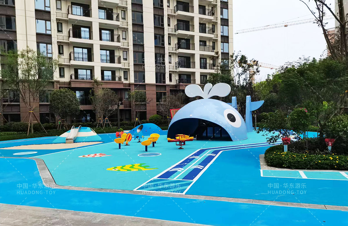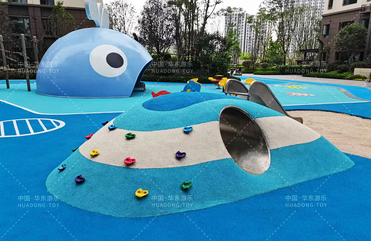 • 该项目采用的是以海洋为主题的儿童游乐园,整个项目以海洋里游荡的大鲸鱼为主要背景,设计了小朋友喜欢的滑梯、钻洞、沙池、盘爬坡等游乐设备,为小朋友的生活学习 提供了一个很好的娱乐场所。