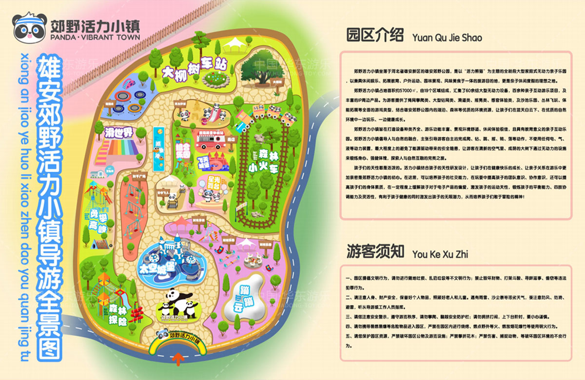 雄安郊野活力小镇旨在打造设备种类齐全、游乐功能丰富、景观环境舒适、休闲体验极佳,且具有教育意义的亲子互动乐园; 郊野活力小镇倡导人与自然的融合,主张引导游客自主的完成爬、钻、跳、摇、转、荡等动作; 不使用任何电、气、液等动力装置,最大程度上的避免了能源驱动带来的安全隐患; 让游客在清新的空气里、成荫的大树下通过无动力的设施来锻炼身心、强健体魄,探索人与自然互融的完美之旅。