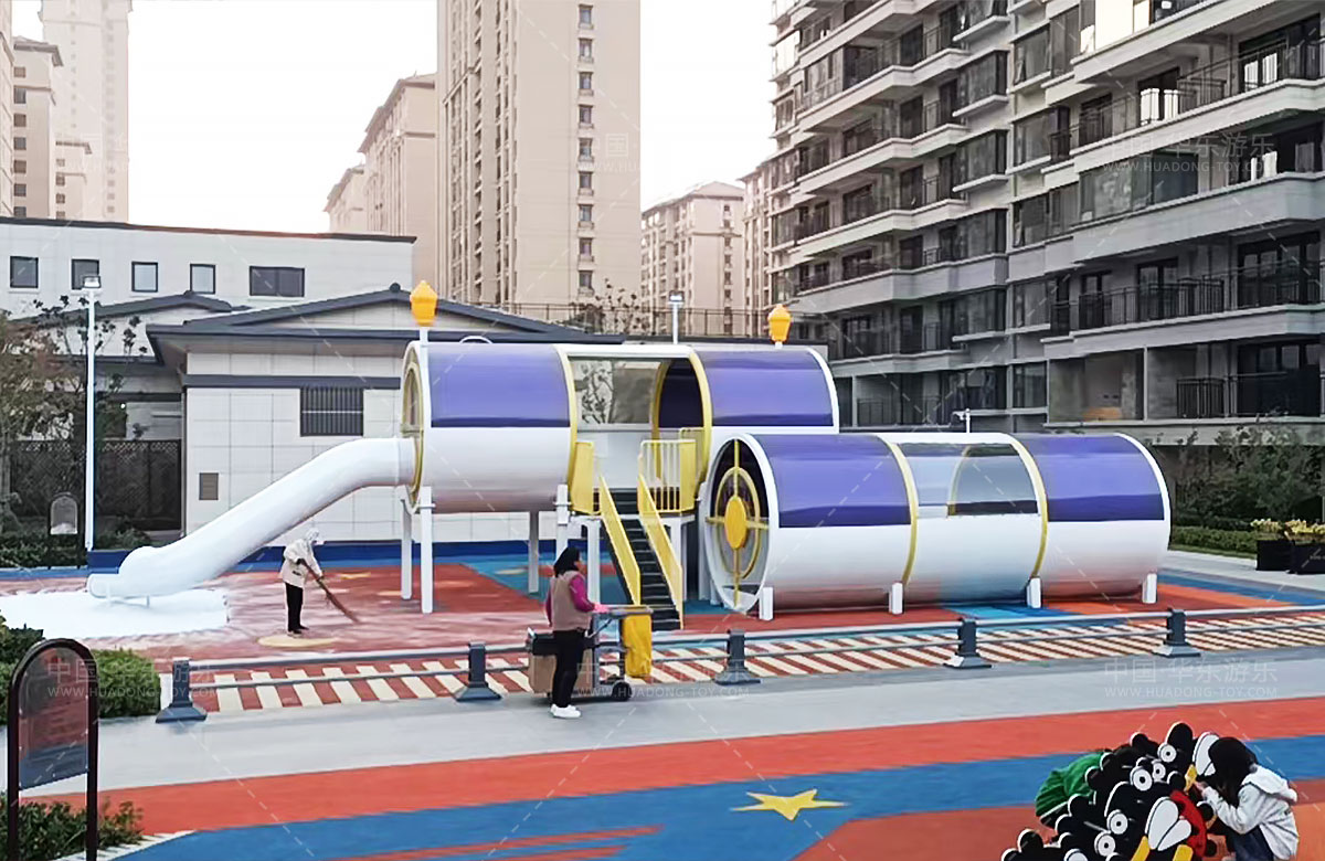 • 江苏南通海安碧桂园项目是一个高档的地产类游乐项目,该项目采用能量电池为设计主题,设计了小朋友喜爱的摇摇乐、沙池、微地形、攀爬网、攀爬绳、滑梯等游乐设备,为生活在该小区的孩子们提供了一个休闲娱乐的场所。