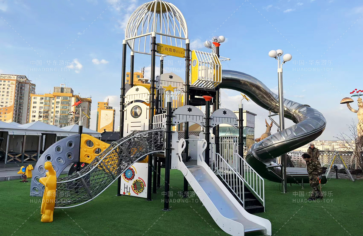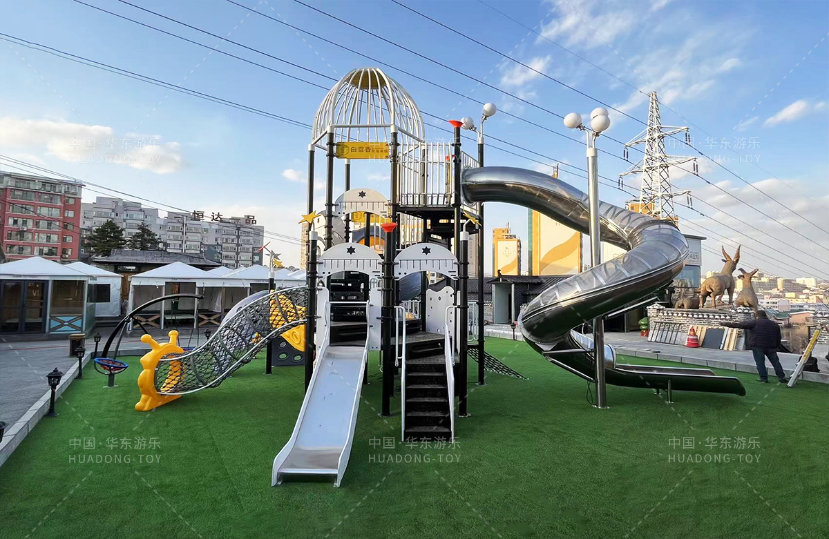 吉林省白雪香民俗烧烤城是一个专业的休闲夜宵烧烤城,此次选用的是leyu.乐鱼游乐自主研发和设计的 PE板系列滑梯,卡通的造型,齐全的功能深受小朋友们的喜爱,同时还设置了小朋友喜欢的儿童摇摇乐、组合秋千、 旋转碗等游乐设备。