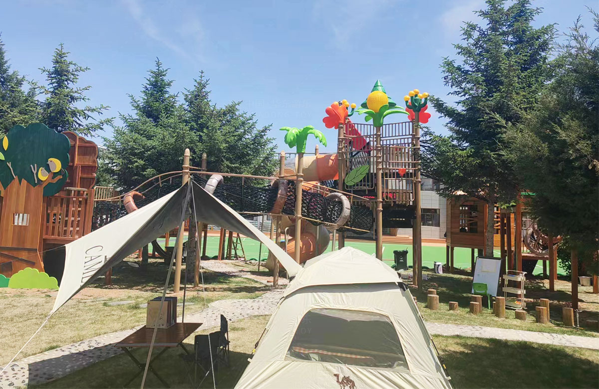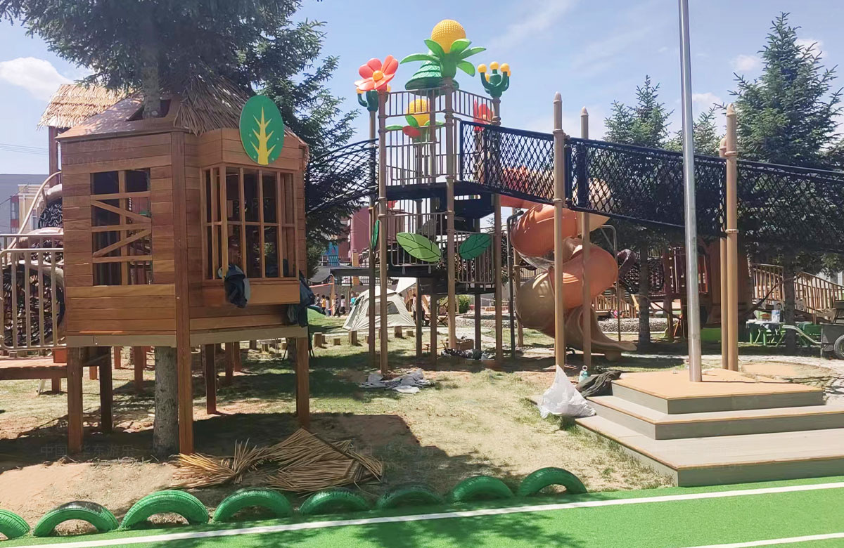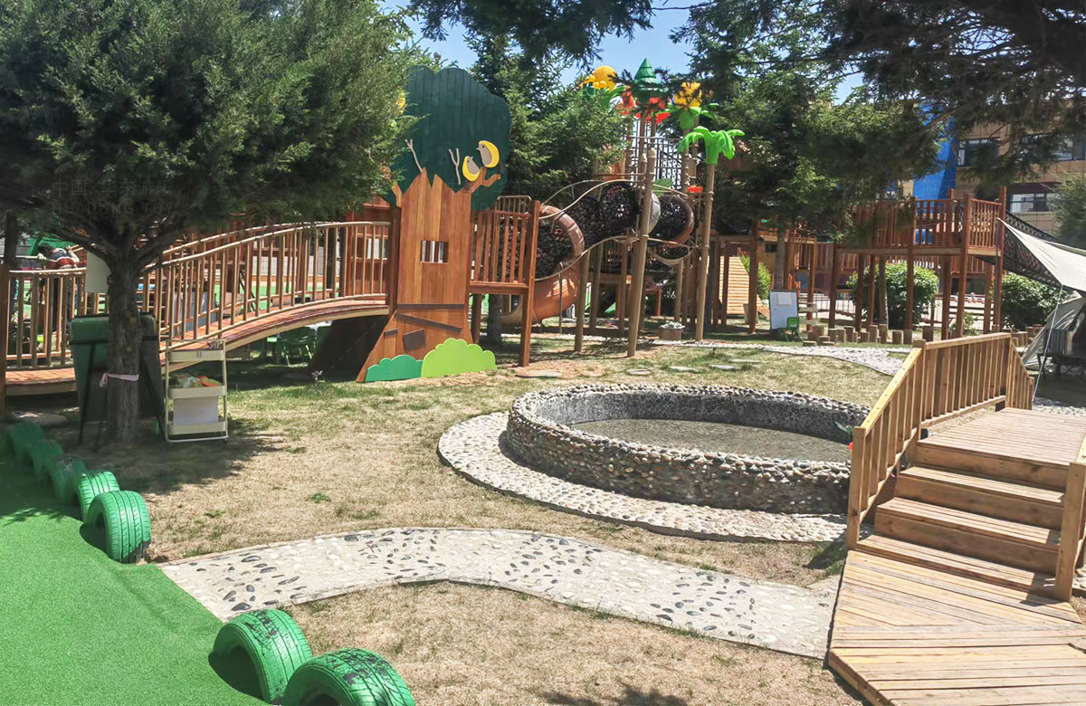 该幼儿园是一个专业性的学前教育培训机构,选用的是leyu.乐鱼游乐自主研发和设计的具有空中攀爬网、钻洞、空中栈道、游戏小屋、直行滑梯为一体的综合性 游乐设备,这些设备的选择不仅仅丰富了孩子们校园的生活,还很好的锻炼了小朋友的攀爬能力、四肢的协调能力、攀爬过程中的平衡能力,同时也促进了孩子们大小脑的发育。