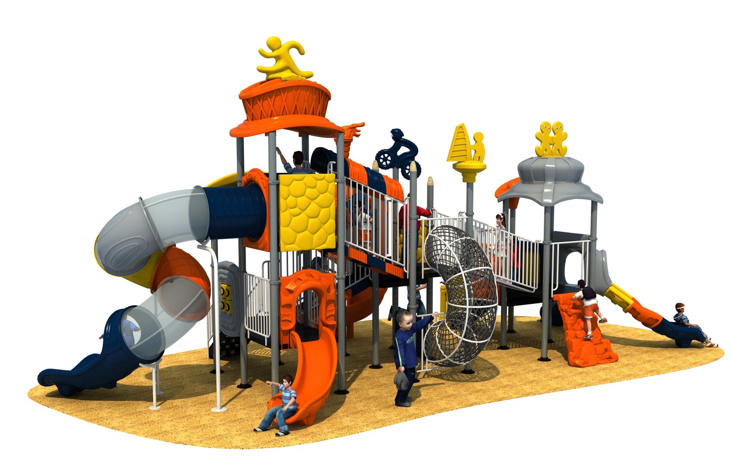 • 赛事系列游乐设备是leyu.乐鱼游乐根据常见的足球、垒篮球体育等赛事而自主研发和设计的组合滑梯,它是一款能够引导孩子们在玩耍时小朋友之间应该互相帮助、相互鼓励的无动力游乐器械,也是一个具备教导孩子们学会通过自己的努力取得最终胜利而敢于拼搏和挑战的游乐设备,卡通的造型、生动的形象让小朋友在玩耍的过程中有一个愉快的童年。